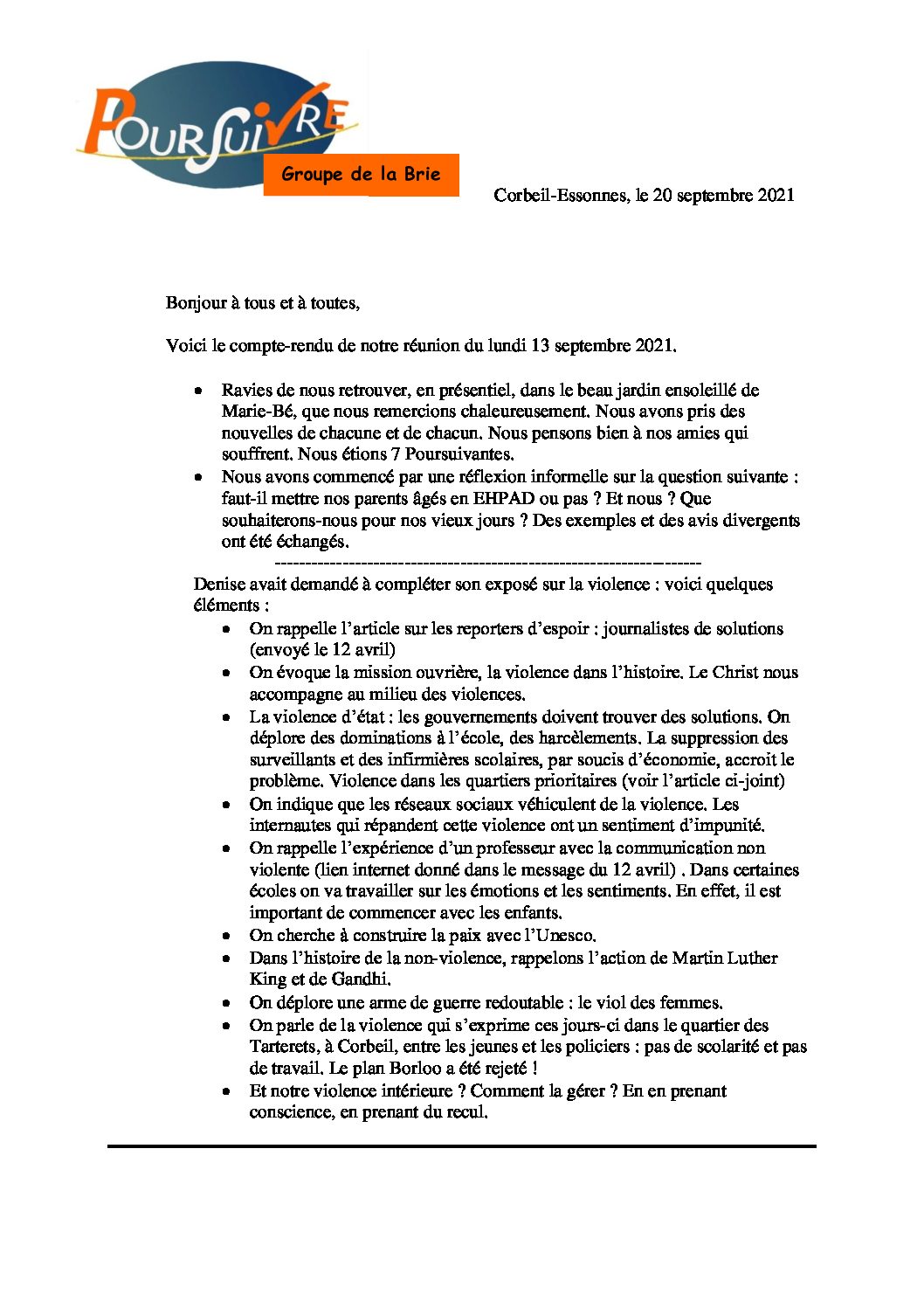 Compte rendu de septembre 2021