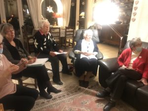 - Lundi 13 décembre, à 15h00 : fête et repas de Noël chez Madeleine. Nous devons trouver des idées d’animations.