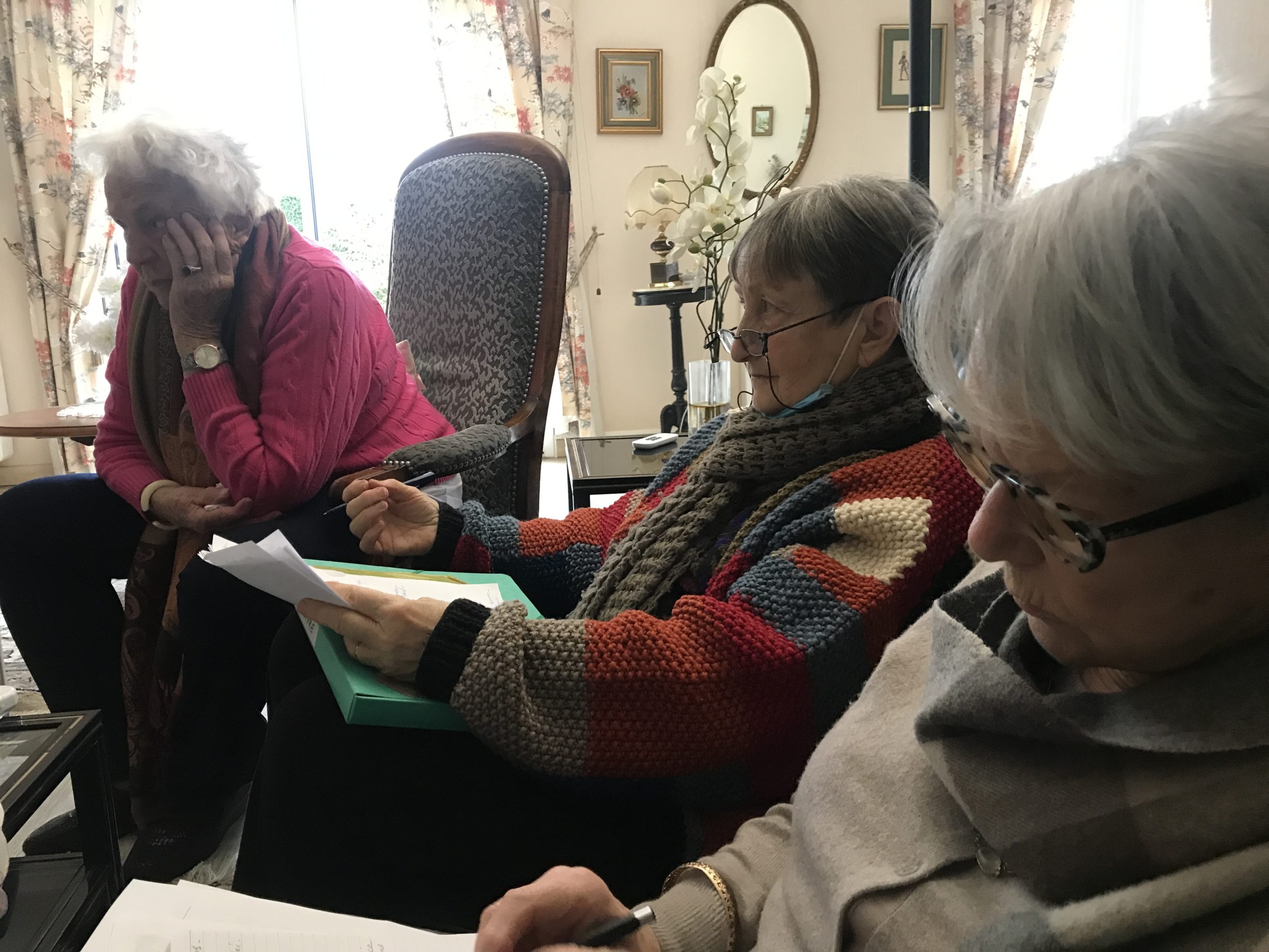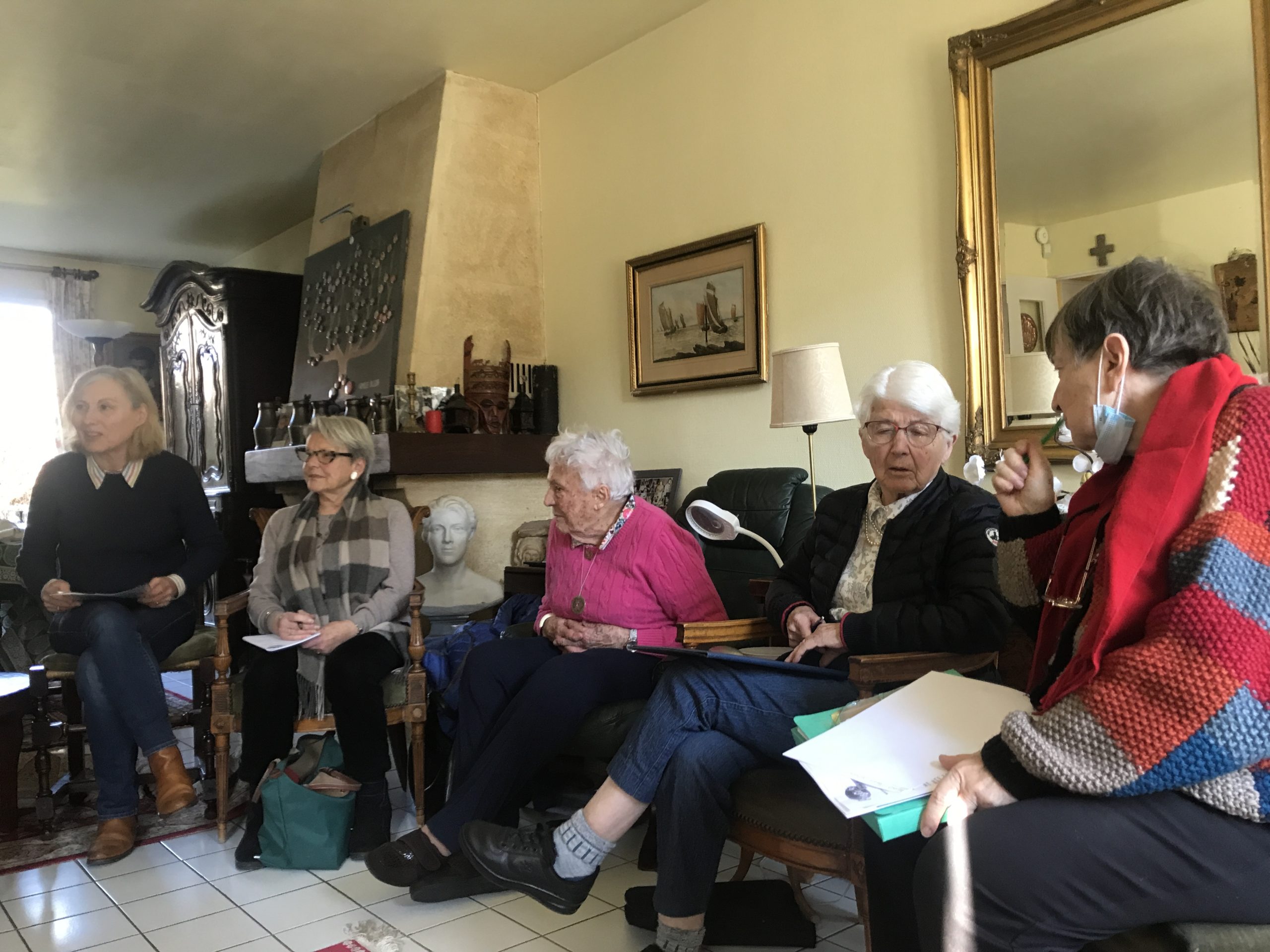 - Lundi 8 novembre, à 14h, chez Jocelyne, si elle le veut bien. Thème : l’homosexualité, question qui touche beaucoup de nos familles. Madeleine pense à une intervenante possible.