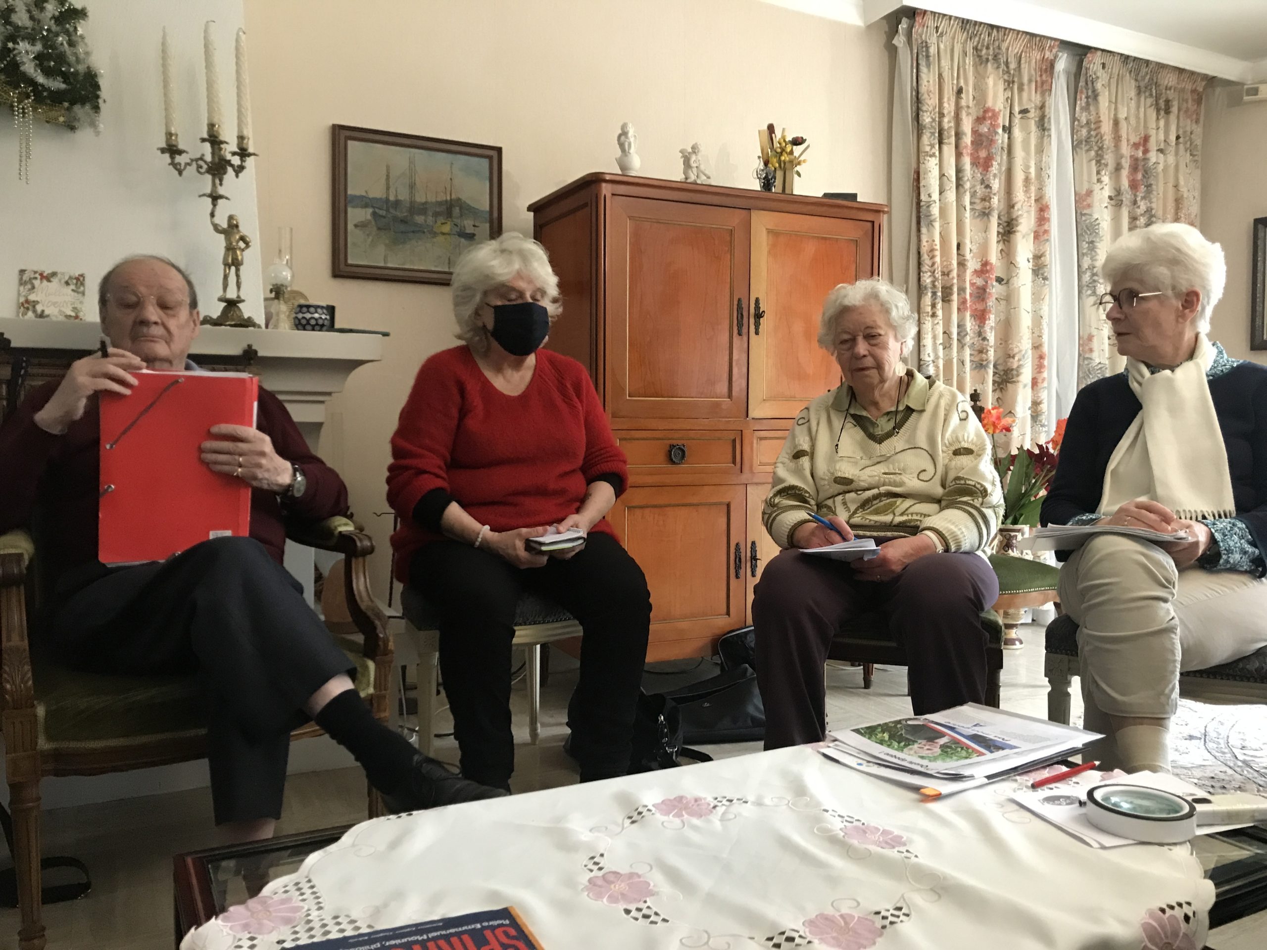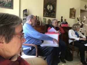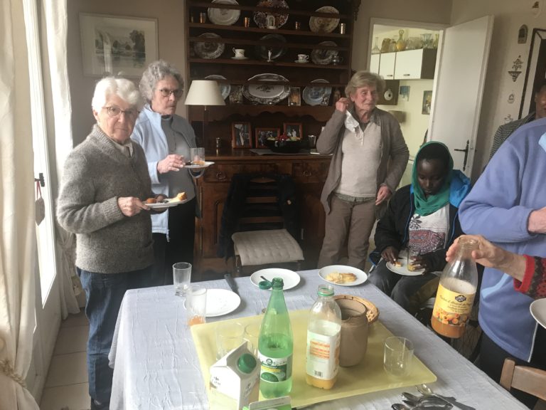- La Visite du Secours Catholique a été un point fort de la réunion, des responsables sont venus avec Karnove et Elles nous ont parlé de leur parcours et de leur difficulté notamment d’hébergement et d’accès aux soins. Et aussi de la nécessité de justifier de 5 années en France pour obtenir une carte de séjour. Quelques photos seront mises sur le site.