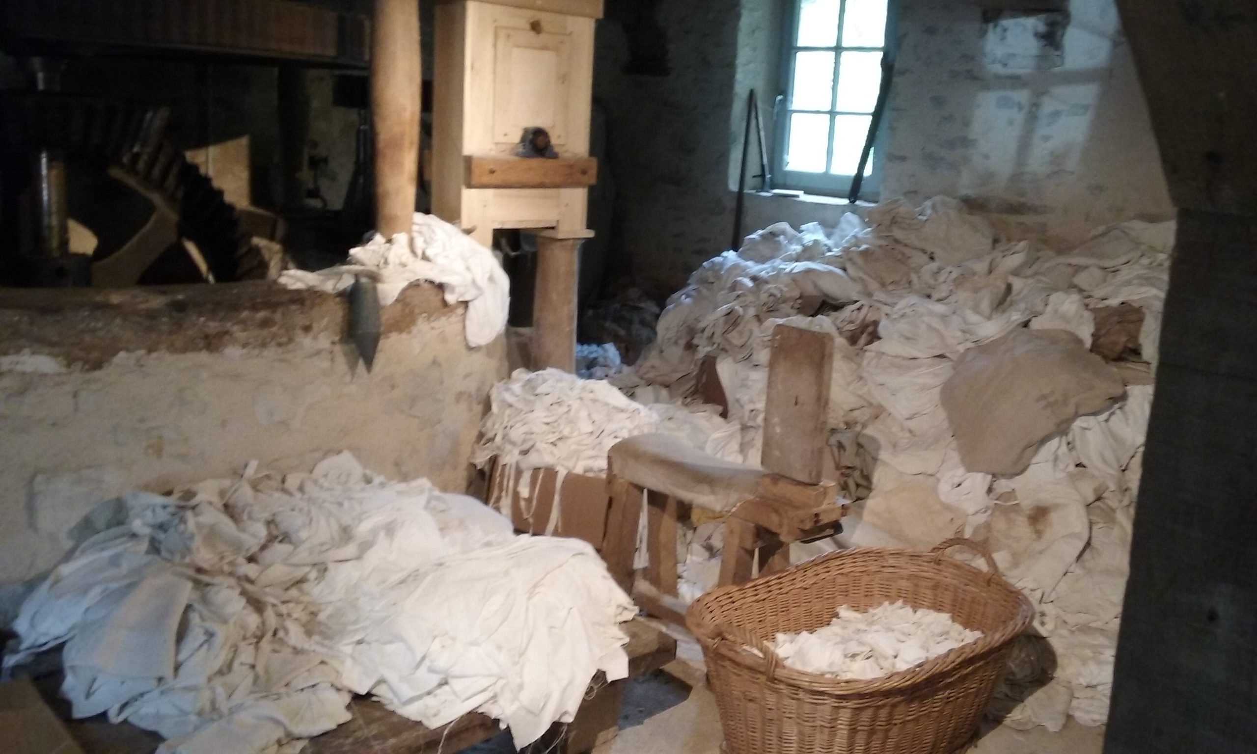 Le Moulin à Papier de Sainte-Suzanne fabrique du papier de façon artisanale à partir de tissus usagés pur chiffon, à la main et feuille à feuille. C’est la renaissance d’une tradition papetière qui remonte au 13ème siècle. Le Maître Papetier est l’un des derniers papetiers en France à produire lui-même sa pâte uniquement à partir de chiffon (vieux draps de coton, chanvre ou lin).